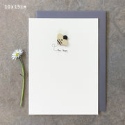 Bring a touch of cheer to any occasion with the Woodland Bee Happy card. Featuring a charming wooden bee design, this card spreads positivity and warmth with its joyful spirit. Perfect for brightening someone's day.
