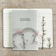 Celebrate kindness and confidence with this charming small notebook featuring two adorable sheep alongside the uplifting message, "Ewe are brilliant, brave and beautiful." Crafted by East of India, it combines thoughtful design and quality, making it perfect for jotting down your thoughts, dreams, or daily reflections. Let this delightful notebook inspire positivity every day while adding a touch of warmth to your writing.