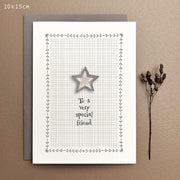Celebrate your special friend with the Dreamy card-Special friend, paired beautifully with a charming wooden star. This thoughtful combo not only conveys your heartfelt message but also gives a lasting keepsake to treasure.